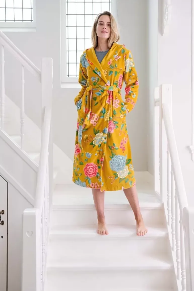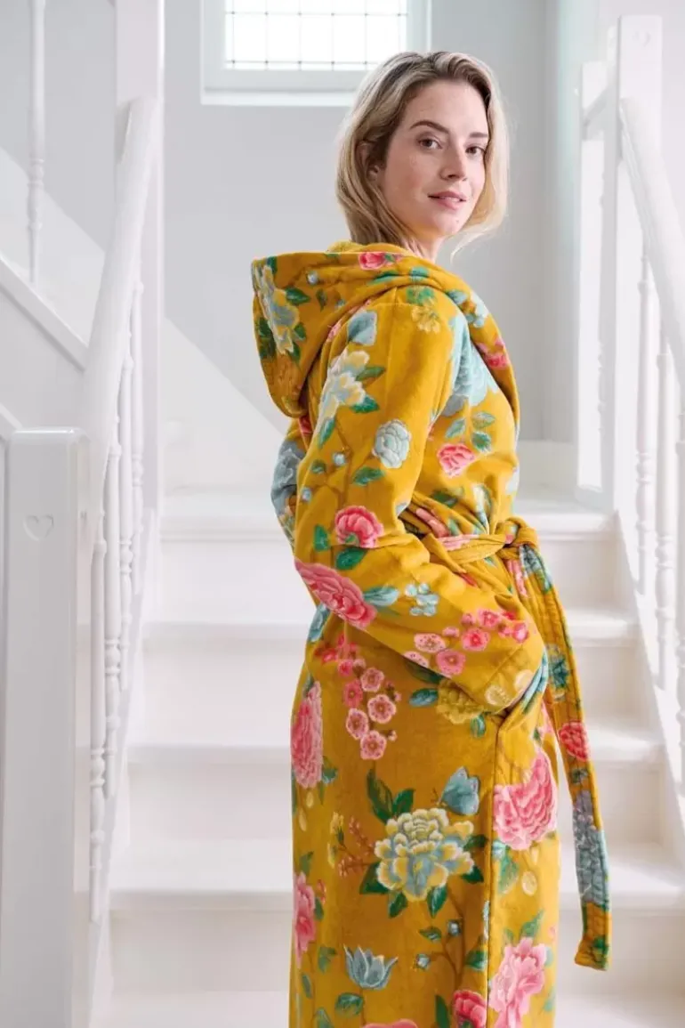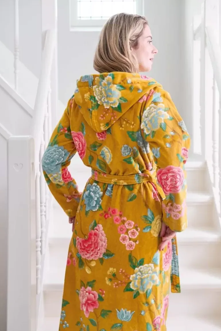 Geef Je Garderobe Een Luxe Uitstraling Met Deze Superzachte Fluwelen Badjas. Deze Gele Good Evening Badjas Is Fijn Om Te Dragen In De Ochtend, Maar Ook Heerlijk Om De Dag Mee Af Te Sluiten. De Good Evening Badjas Heeft Een Dessin Van Elegant Getekende Orientaalse Bloemen. Tussen De Bloemen Vind Je Vlinders. In Het Dessin Zijn De Kleuren Geel, Blauw, Groen, Roze, Rood En Wit Gebruikt. De Binnenkant Van De Badjas Heeft Een Effen Gele Kleur. De Badjas Heeft Een Capuchon, Steekzakken En Sluit Je Met Een Lang Ceintuur. De Good Evening Badjas Past Goed Bij De Andere Items Uit Deze Collectie, Waardoor Er Een Leuk Mix & Match Effect Ontstaat In Je Badkamer. De Good Evening Badjas Is Gemaakt Van 100% Hoogwaardige Katoen Terry Velour Met Een Kwaliteit Van 380 Gr/M2, Waardoor De Badjas Super Zacht En Stevig Aanvoelt. Door Het Hoogwaardige Materiaal Heeft Uitstekende Vochtabsorberende, Ademende En Sneldrogende Kwaliteiten. Een Badjas Om Verliefd Op Te Worden!