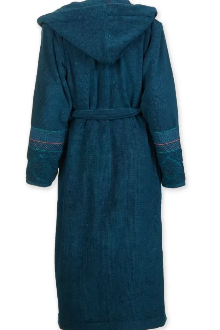 Wikkel Jezelf In Deze Donkerblauwe Zachte Soft Zellige Badjas Met Streepjes Dessin In Donkerblauw En Blauwgroen Voor Een Fijn Gevoel Thuis. Aan De Uiteinden Van De Mouwen Zitten Drie Biesjes In De Kleuren Blauwgroen En Roze. Daar Tussenin Zitten Twee Verschillende, Stijlvolle Jacquard Geweven, Bloemenpatronen In De Kleuren Donkerblauw En Blauwgroen. De Mouwen Hebben Een Gestreepte Boordafwerking In Donkerblauw En Blauwgroen. De Badjas Heeft Een Capuchon, Steekzakken En Sluit Je Met Een Lang Ceintuur. De Soft Zellige Badjas Is Gemaakt Van 100% Hoogwaardige Katoen Jacquard, Waardoor De Badjas Super Zacht En Stevig Aanvoelt. Door Het Hoogwaardige Materiaal Heeft Uitstekende Vochtabsorberende, Ademende En Sneldrogende Kwaliteiten.
