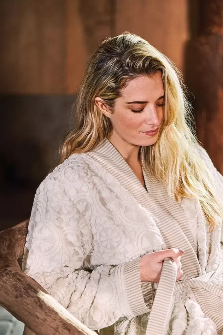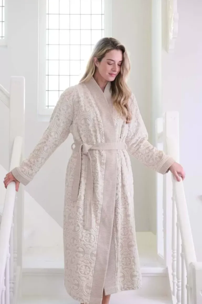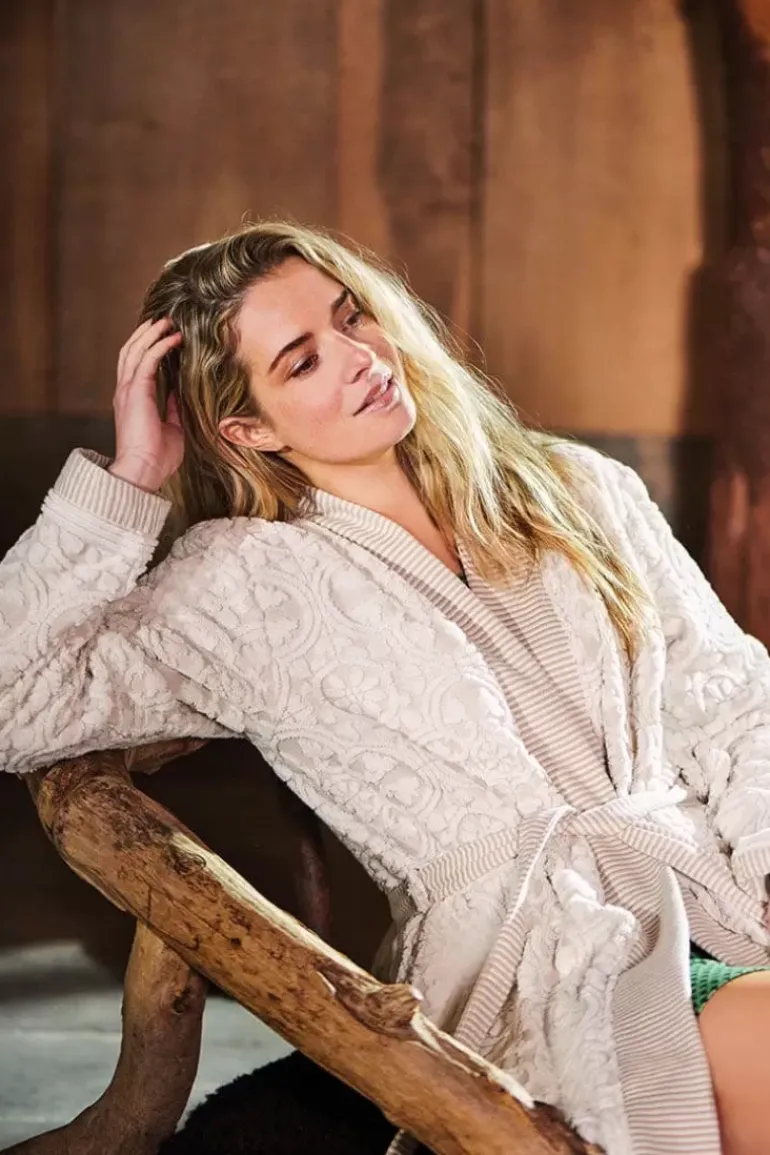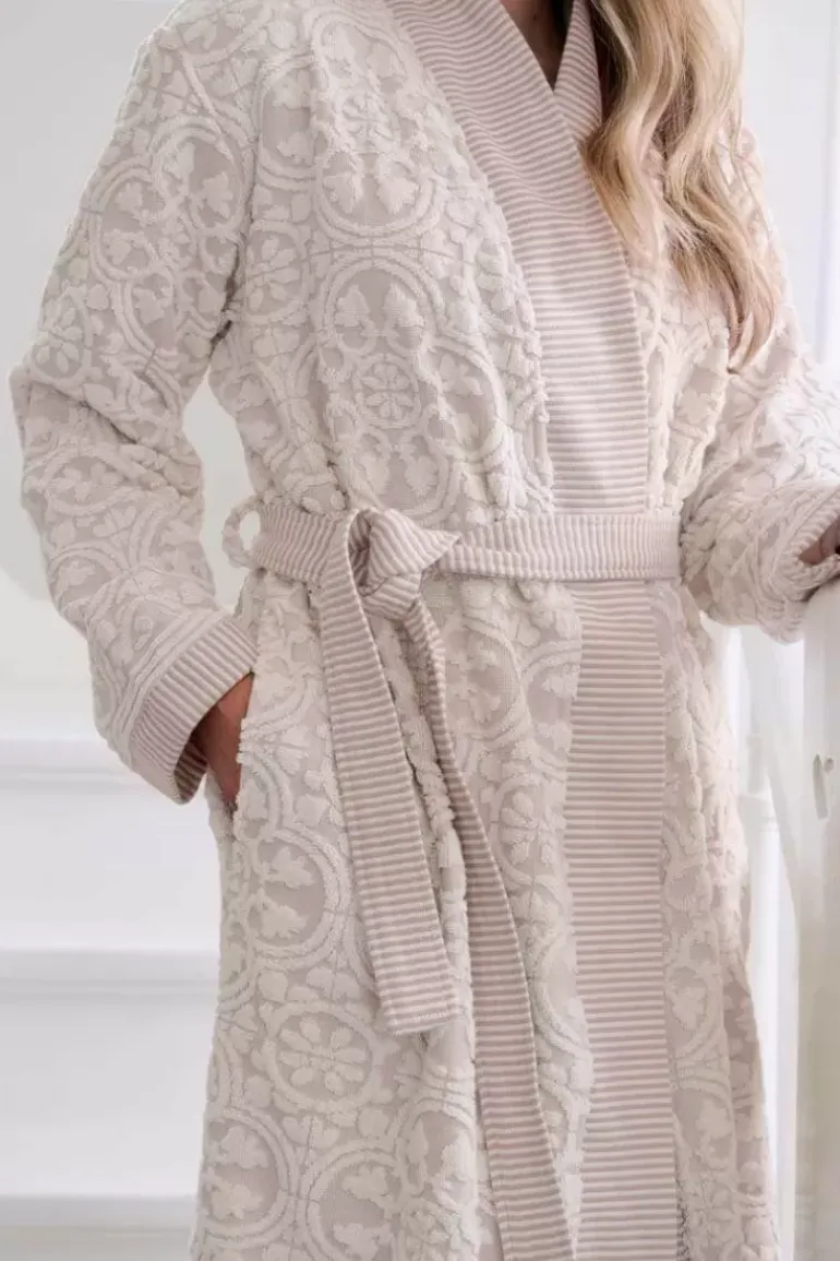 Deze Khaki Tile De Pip Badjas Is Fijn Om Te Dragen In De Ochtend, Maar Ook Heerlijk Om De Dag Mee Af Te Sluiten. Gedecoreerd Met Een Tonaal Ingeweven Tegelmotief Met Hoog-Laag Effect. De Badjas Heeft Een Mooi Aansluitende Doorgestikte Kraag, Steekzakken En Sluit Je Met Een Lang Ceintuur. De Badjas Is Gemaakt Van 100% Hoogwaardige Katoen Terry Velours Met Een Kwaliteit Van 380 Gr/M2.