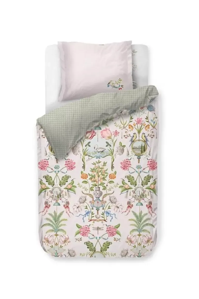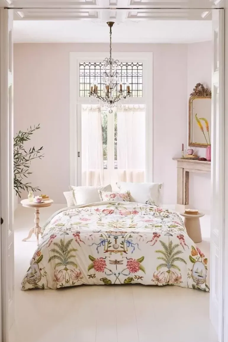 Het Witte Dessin Festa Di Lividonia Doet Je Denken Aan Een Mooie Muurschildering In Een Statig Italiaans Landhuis. Het Dessin Is Opgebouwd Uit Verschillende Bloemen, Vogels En Ornamenten Die Verwijzen Naar Voorstellingen Uit Italie. De Achterkant Heeft Een Patroon Met Schelpjes. Het Overtrek En De Kussens Hebben Een Doorgestikte Oxford Rand Aan De Zijkanten, Wat Een Luxe Uitstraling Geeft. Het Bedovertrek Kan Je Tweezijdig Gebruiken En Hiermee Een Speels Mix & Match Effect Op Je Bed Creeeren.