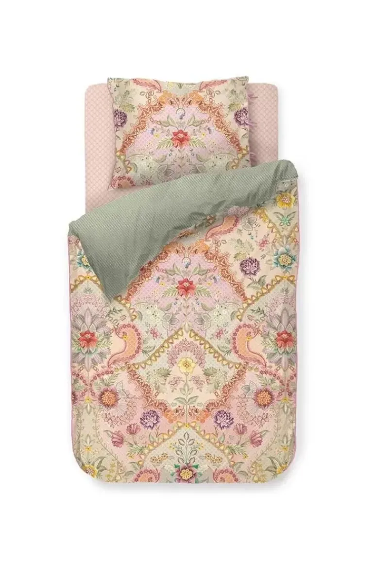 Het Pastel Dekbedovertrek Saluti Grandi Is Een Symmetrisch Opgebouwd Bloemenpatroon, Geinspireerd Op De Prachtige Behangmotieven Uit Italie. De Achterkant Heeft Een Patroon Van Streepjes. Het Overtrek En De Kussenslopen Hebben Een Doorgestikte Oxford Rand Aan De Zijkanten, Wat Een Luxe Uitstraling Geeft. De Kussenslopen Hebben Een Striksluiting En Net Als Het Overtrek Twee Verschillende Kanten En Kun Je Tweezijdig Gebruiken. Zo Creeer Je Een Speels Mix & Match Effect.