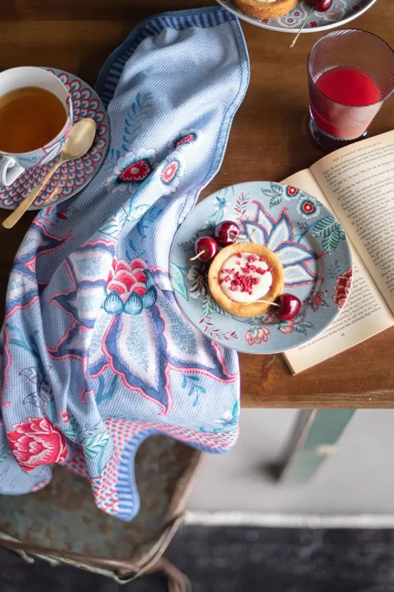 Vul Je Servies Aan Met Dit Flower Festival Gebaksbord Bord Van 17 Cm. Ons Gebaksbord Heeft Een Blauwe Achtergrond En Is Versierd Met Het Elegante Flower Festival Dessin. Dit Rijke Bloemendessin Is Opgebouwd Uit Een Variatie Van Fantasierijke Rode En Roze Chintzbloemen Met Lichtblauwe En Groene Bladeren. De Speels Geplaatste Bloementakjes Met Uitgewerkte Gedecoreerde Bloemen En Bladeren Geven Dit Verfijnde Dessin Een Extra Rijke Beleving. Met Ons Flower Festival Porselein Zul Je Jouw Servieskast En Tafel Laten Stralen.