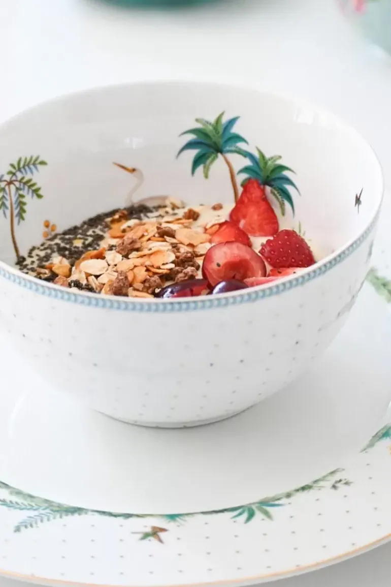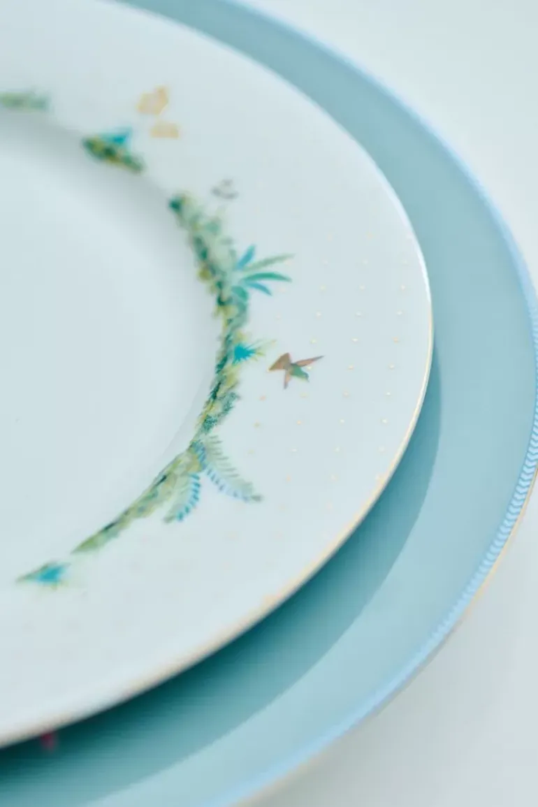 Dineren Met Het Gezin Of Met Vrienden? Dit Dinerbord Is Perfect Voor Een Stijlvol Diner. Het Bord Heeft Een Witte Achtergrond Met Gouden Stippen En Is Rond Het Midden Versierd Met Exotische Planten. Perfect Te Combineren Met De Andere Borden Uit De Jolie Collectie. Combineer Dit Bord Bijvoorbeeld Met Een Van De Ontbijtborden Voor Een Chique Uitstraling.