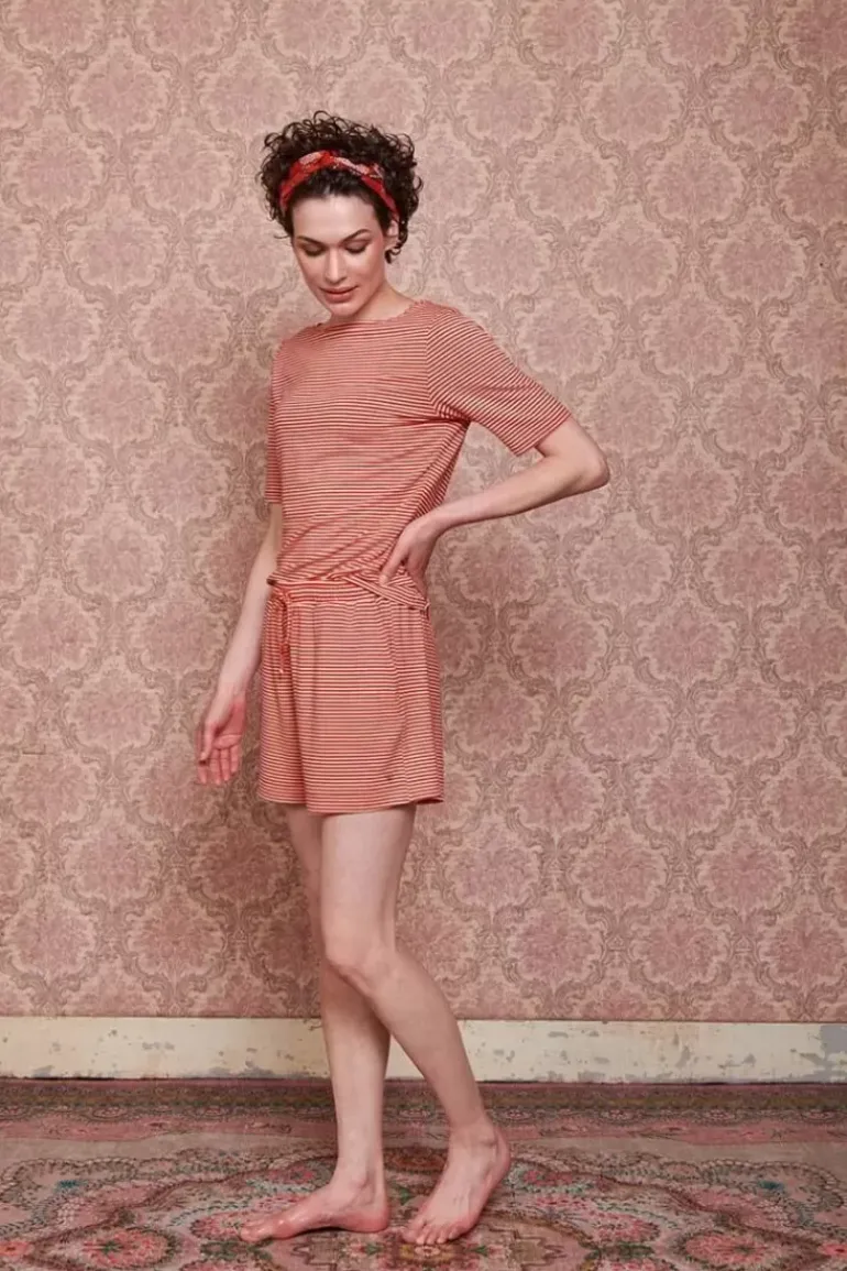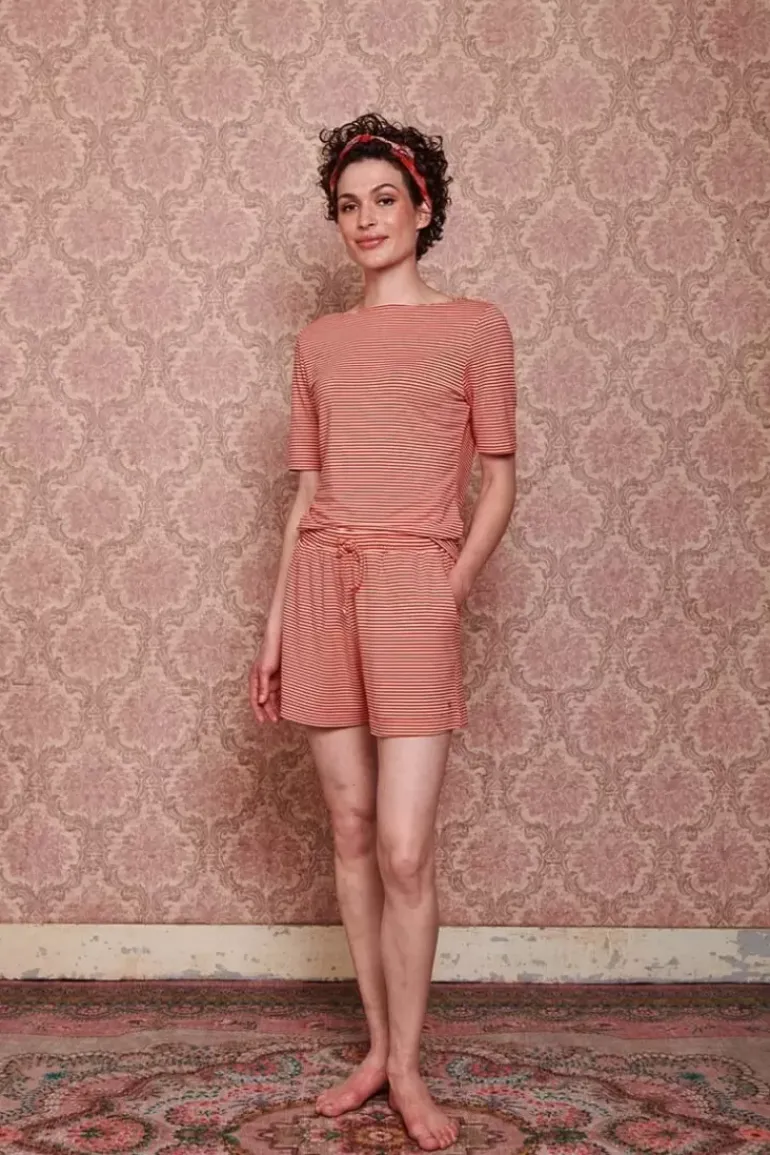 Ben Jij Klaar Voor Ultiem Comfort? Met Deze Korte Broek In Het Little Sumo Stripe Dessin Breng Jij Het Zonnetje Direct In Huis. Dit Dessin Geeft Een Speels Effect Waarin Horizontale Strepen De Hoofdrol Spelen. Daarnaast Heeft De Broek Een Vrolijke Koraalroze Kleur Welke Makkelijk Te Combineren Is Met De Overige Items Uit Deze Collectie. Naast Een Elastische Taille, Heeft Het Broekje Ook Een Koord Voor Extra Comfort. Gemaakt Van Viscose, Polyester En Elastane Waardoor De Broek Heerlijk Zacht En Stretchy Is. Stijl Met Een Bijpassende Top En Creeer Een Prachtige Combinatie.