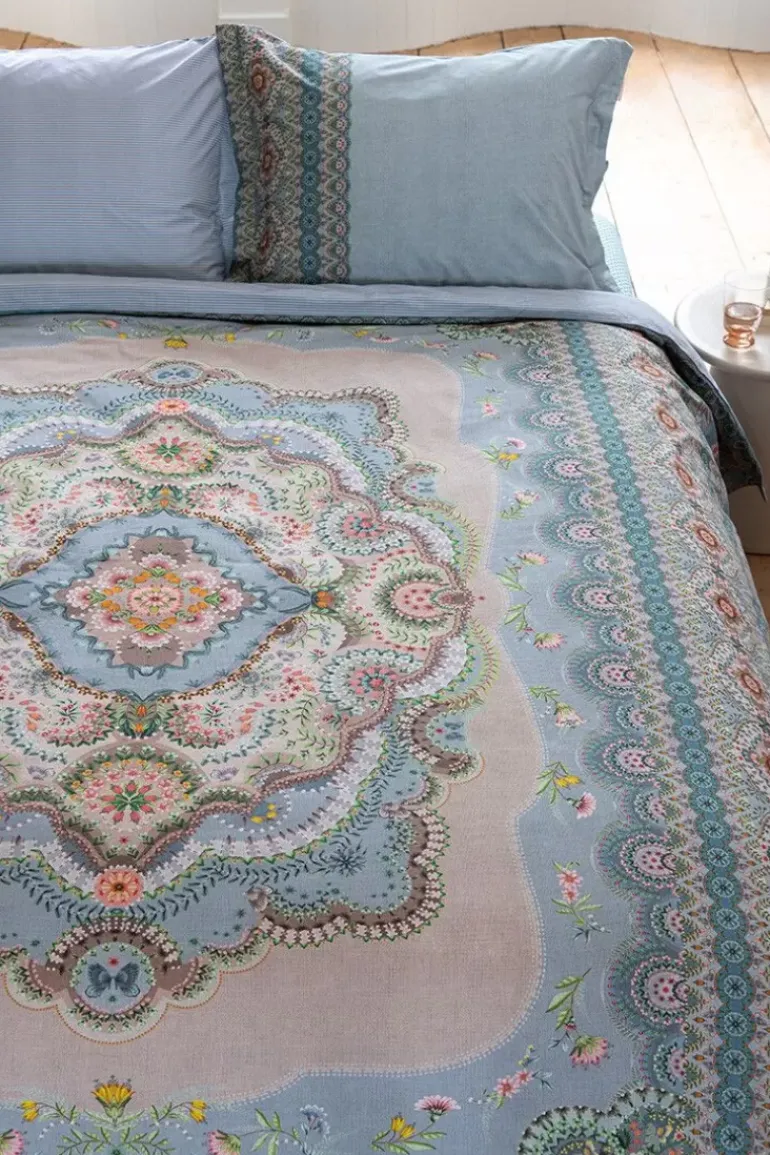 Het Unieke Blauwe Kussensloop Majorelle Carpet Is Geinspireerd Op Onze Klassieke Vloerkleden. Deze Print Is Opgebouwd Uit Duizenden Kleine Bloemen Die In Paisley-Achtige Vormen Zijn Geplaatst Die De Zijkant Van Het Kussensloop Decoreren. Onder De Print Zit Een Subtiele Geprinte Linnen Textuur, Waardoor De Kussensloop De Authentieke Uitstraling Van Een Geweven Kleed Krijgt.