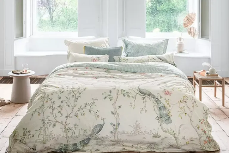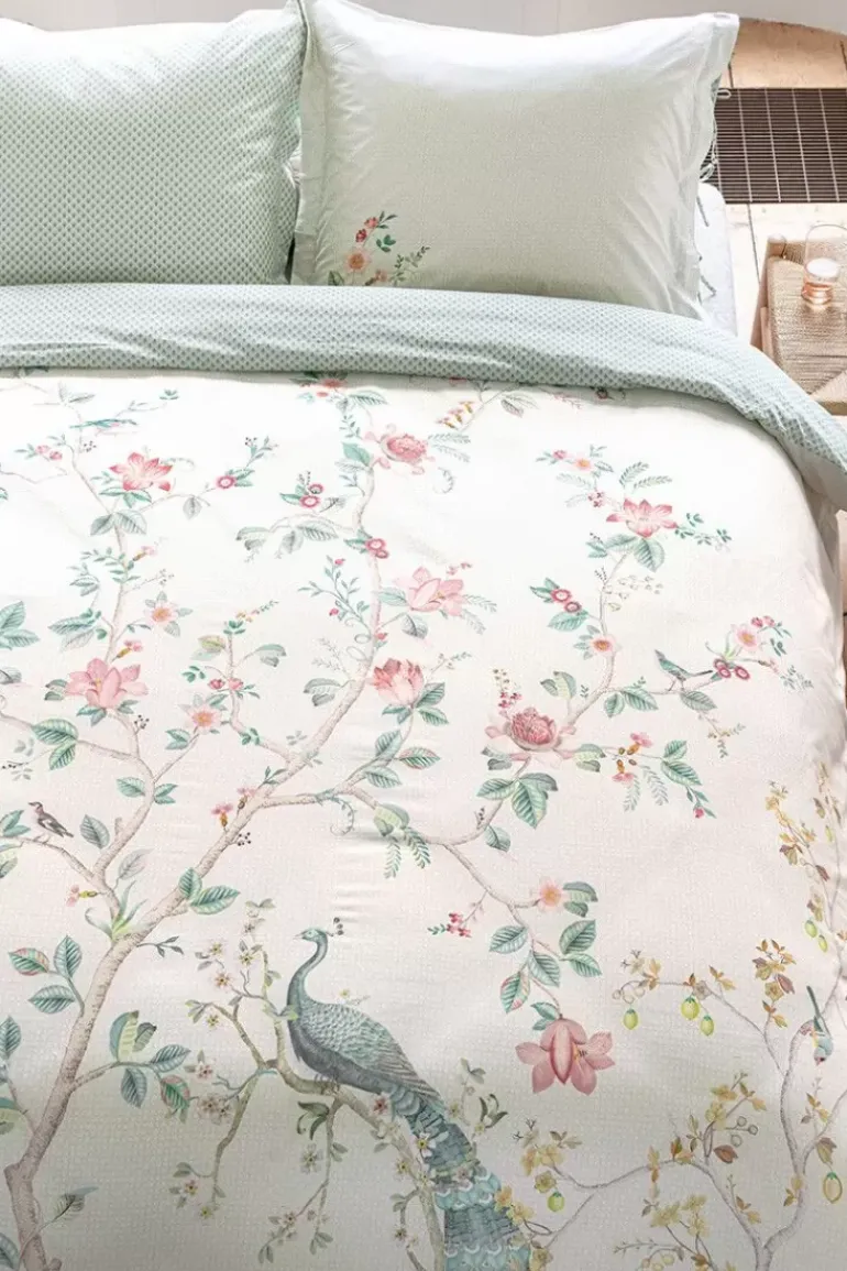 Dit Romantische Witte Okinawa Kussensloop Is Geinspireerd Op Oosterse Chinoiserie-Prints. Japanse Bloesem Decoreert Dit Kussensloop. De Zachte Kleur Van Dit Sierkussen Zorgt Ervoor Dat Het Een Rustige Maar Elegante Uitstraling Geeft Op Je Bed.