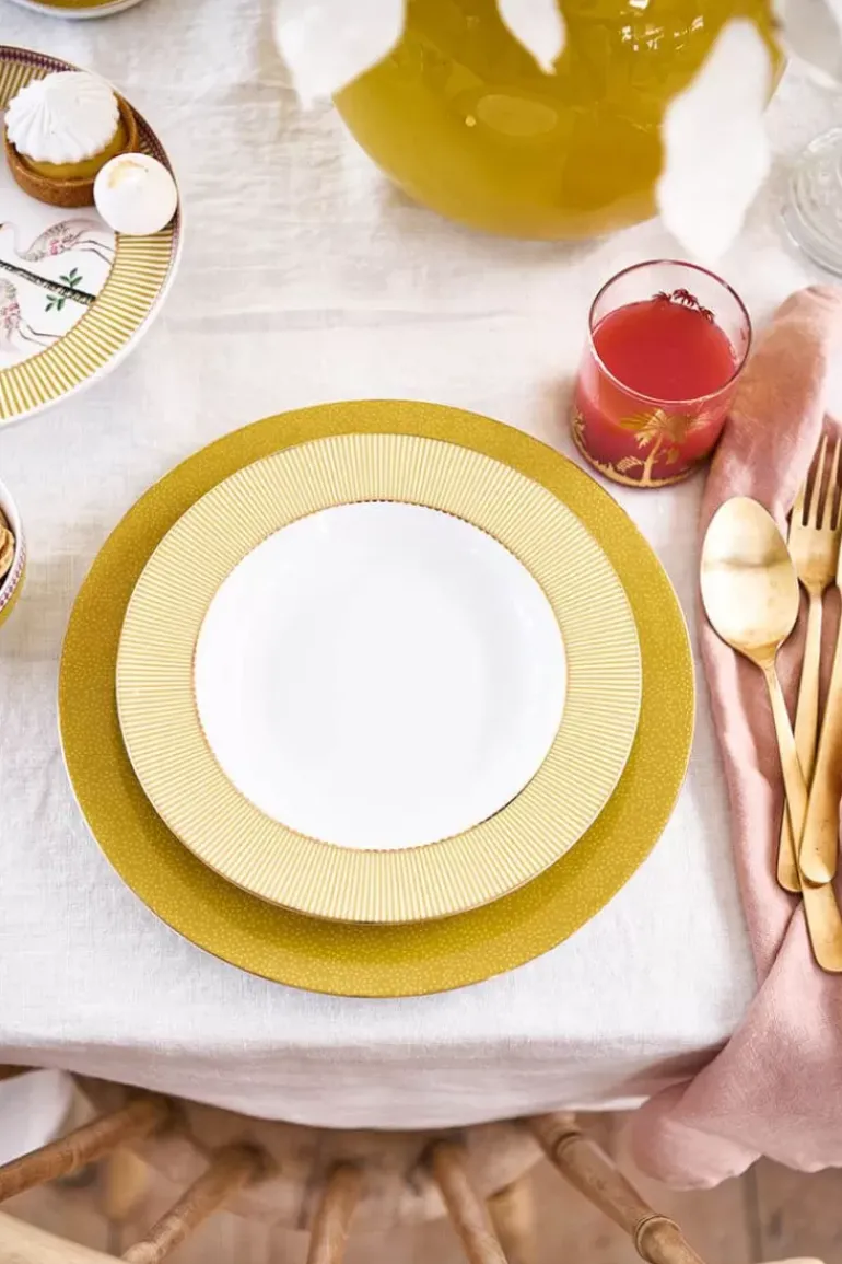 Dit Gele Diepe Bord Is Gemaakt Van Hoogwaardig Porselein En Versierd Met Gele En Witte Strepen. Elke Rand Heeft Gouden Details. Vormt Een Mooie Combinatie Met De Rest Van Het Diner Servies Uit De La Majorelle Collectie.