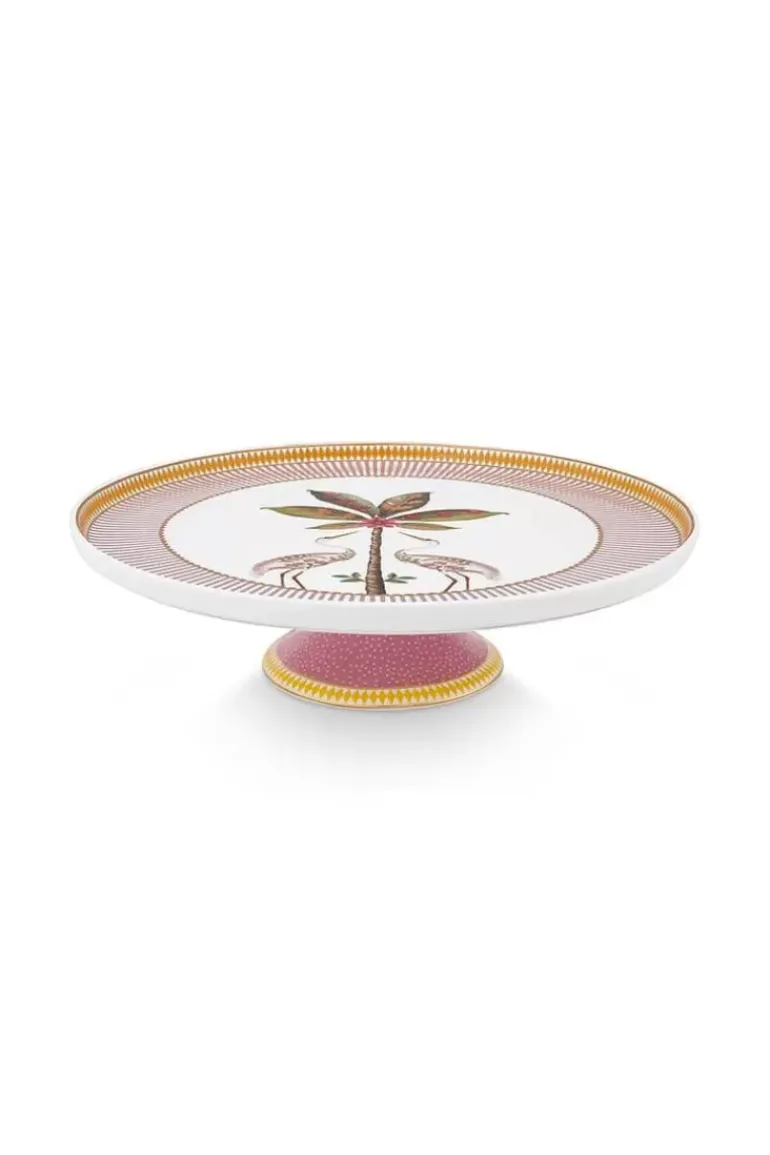 Maak Jouw Collectie Compleet Met De La Majorelle Taartplateau. De Roze Taartplateau Is Versierd Met Het Vrolijke La Majorelle Dessin. Dit Dessin Bestaat Uit Een Exotische Palmboom Waar Twee Reigers Omheen Zijn Gedecoreerd. De Rand Van De Taartplateau Is Versierd Met Roze Met Witte Strepen En Geven De Taartplateu Een Rijke Uitstraling. Met Ons La Majorelle Porselein Zul Je Jouw Servieskast En Tafel Laten Stralen!
