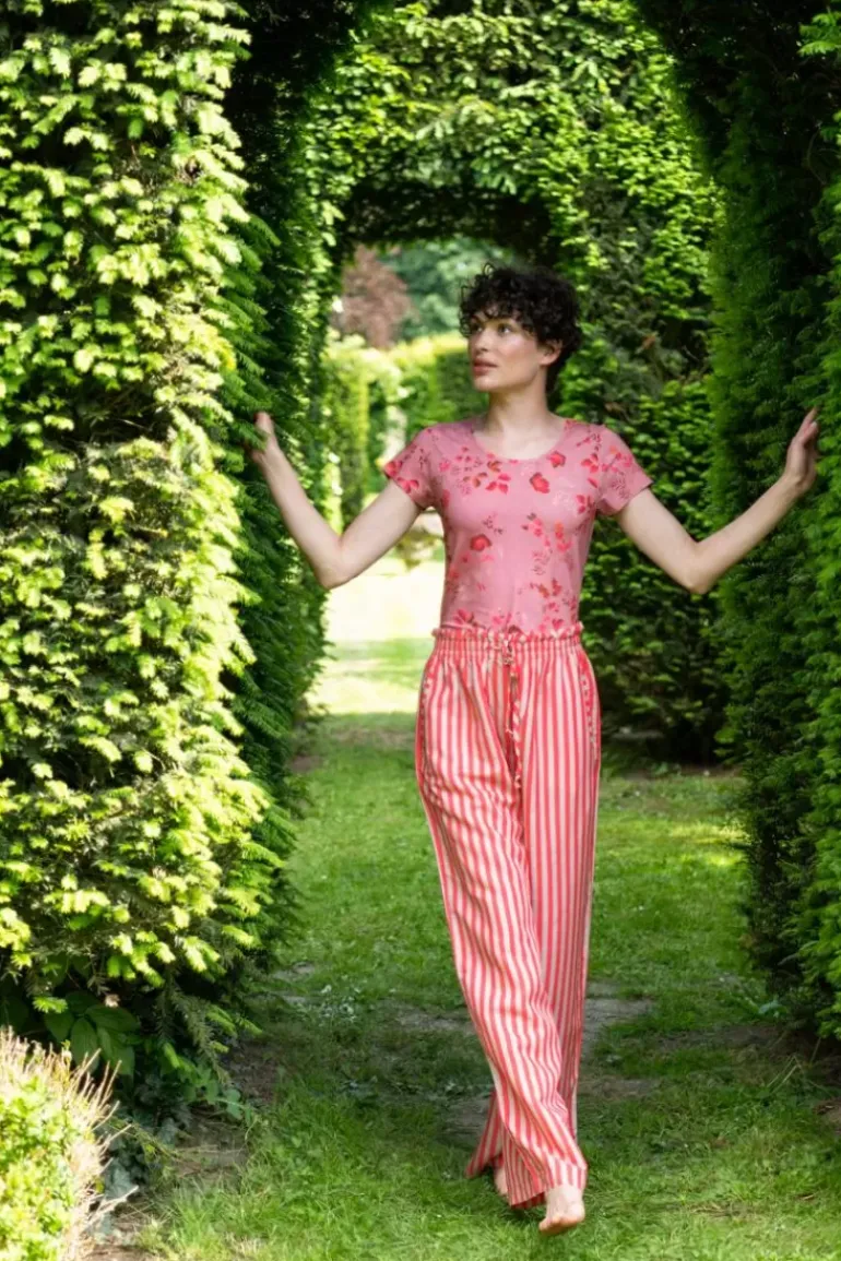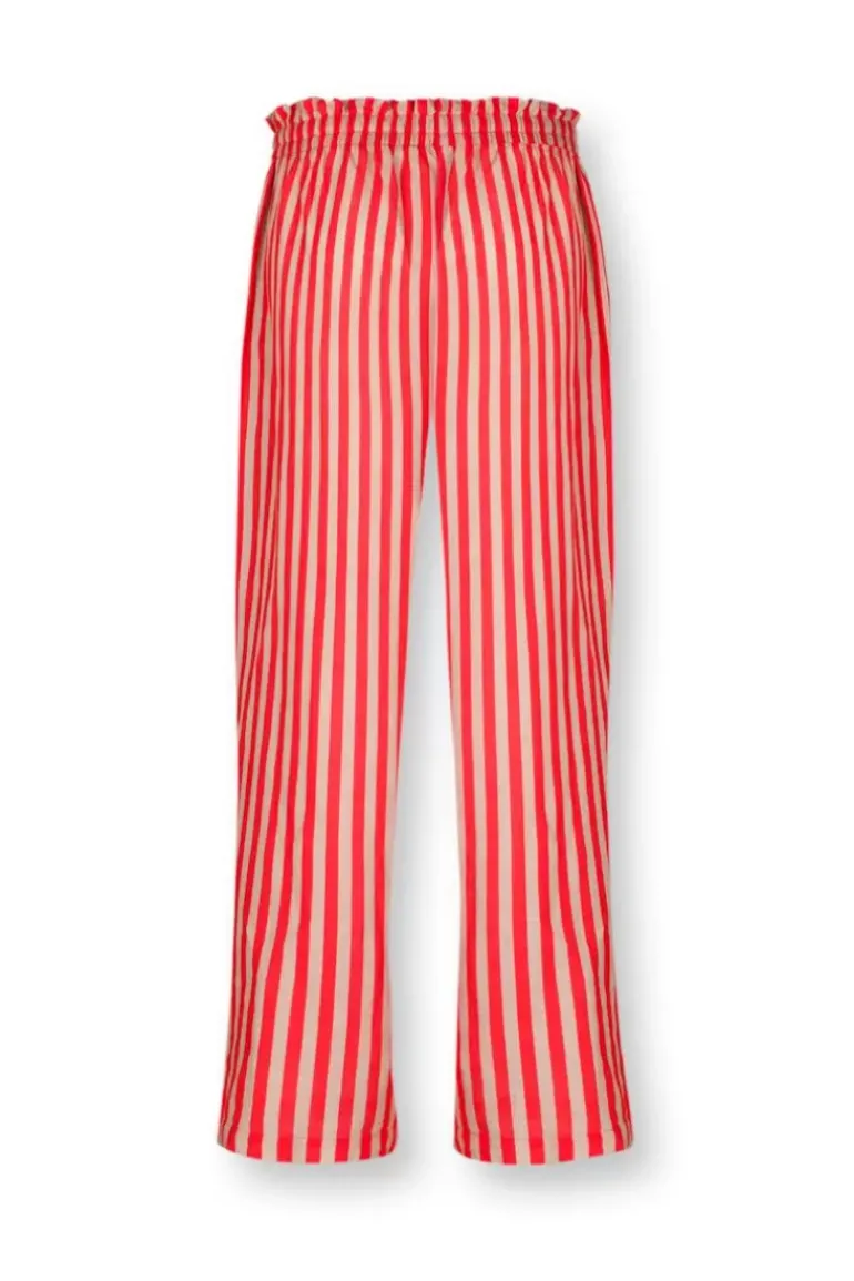 Comfortabel En Zacht, Deze Lange, Rode, Bernice Broek Uit Onze Nieuwe Homewear Collectie. Gedecoreerd Met Het Vrolijke Sumo Stripe Dessin Waarin Verticale Strepen De Hoofdrol Spelen. De Taille Is Elastisch En Heeft Een Koord Rondom Voor Ultiem Comfort. Mix & Match Deze Broek Met De Vrolijke Prints En Comfortabele Items Uit Onze Nieuwste Homewear Collectie En Creeer Een Prachtige Outfit.