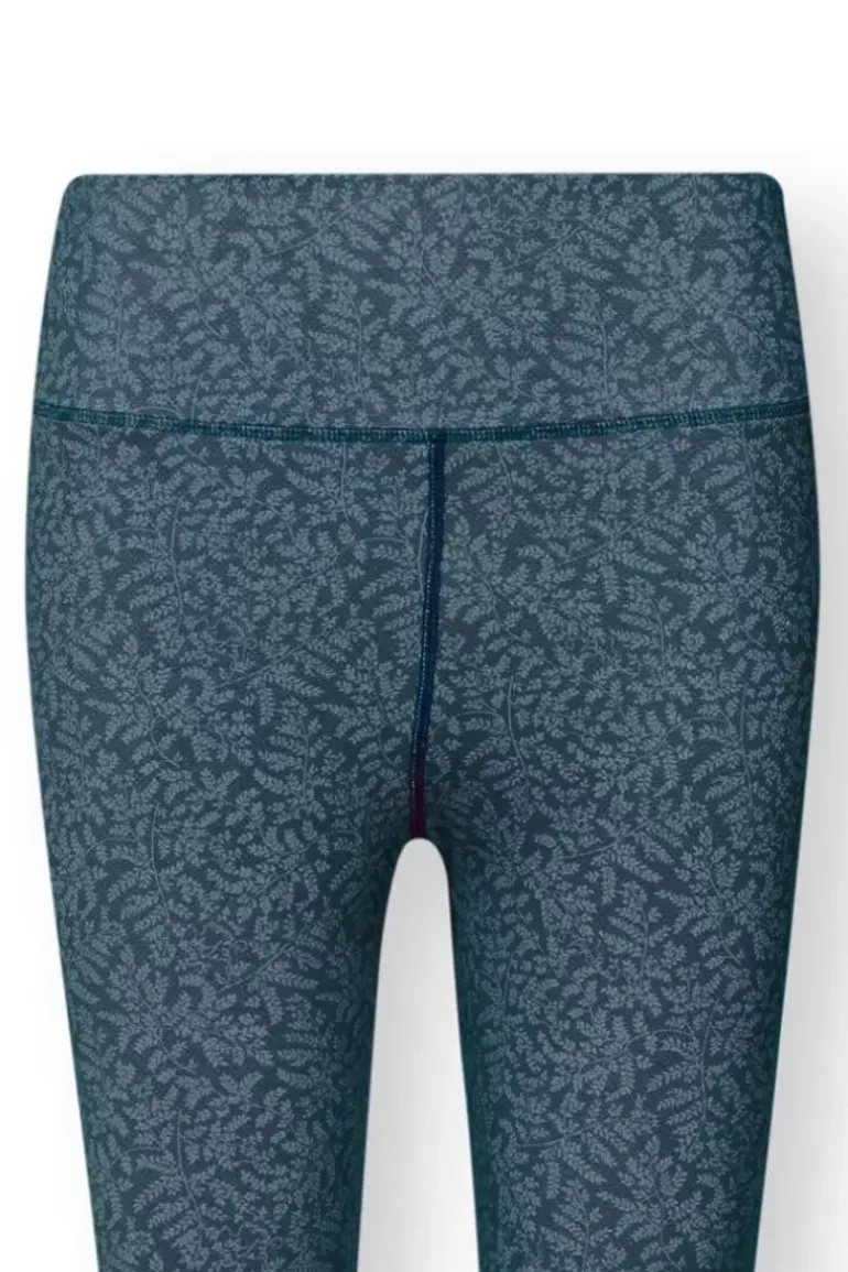 Deze Lange Sportlegging In Het Blauw Is Uitgevoerd Met Het Elegante Leafy Dots Dessin. Het Herhaalde Dessin Is Opgebouwd Uit Een Variatie Van Bladeren. De Legging Is Gemaakt Van Een Elastische Stof Voor Een Comfortabele En Flaterende Fit.
