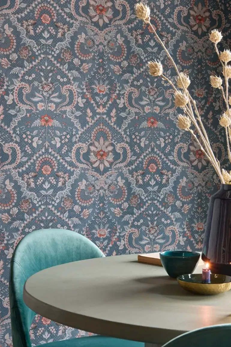 Geef Je Huis Een Betoverende Make-Over Met Het Prachtige Saluti Behang In De Kleur Denim Blauw. Het Saluti Design Is Een Symmetrisch Opgebouwd Bloemenpatroon, Geinspireerd Op De Prachtige Behangmotieven Uit Italie. De Verfijnde Bloemen Zijn Geschilderd In Tonale Kleuren Met Hier En Daar Een Accentkleur, Waardoor Het Makkelijk Te Combineren Is Met De Rest Van De Pip Studio Collectie. Het Saluti Behang Is Verkrijgbaar In Meerdere Kleuren: Groen En Mauve. Dit Design Is Geprint Op Vliesbehang Met Een Vinyl Toplaag.