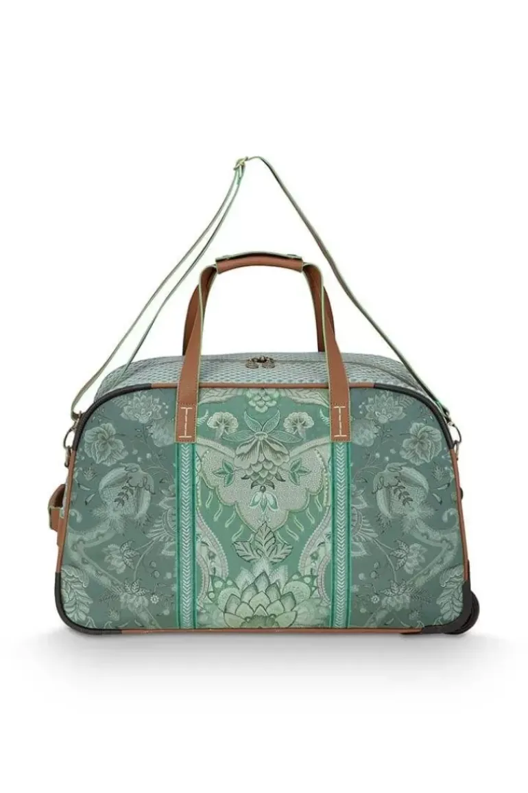 De Nieuwe Weekender Op Wielen In De Kleur Groen Met Het Kyoto Fesitval Dessin Is Een Geweldige Aanvulling Voor Je Warderobe. Deze Weekender Heeft Een Groot Opbergvak Voor Je Kleding En Schoenen, Waarin 3 Zijvakjes Te Vinden Zijn. Een Met Rits En Twee Met Elastische Band. De Tas Is Waterafstotend Van Binnen En Buiten, Dus Perfect Voor Elke Weersvoorspelling. Hiernaast Kan Je Van De Weekender, Een Weekender Op Wielen Van Maken Door De Hendel Uit Het Opbergvak Te Halen.