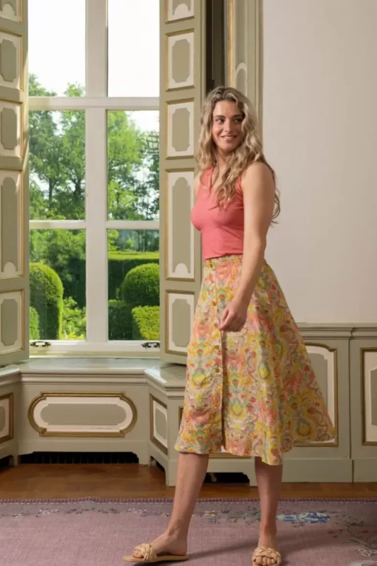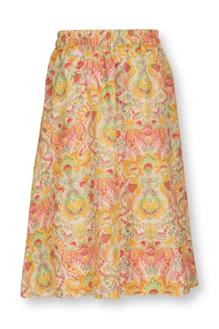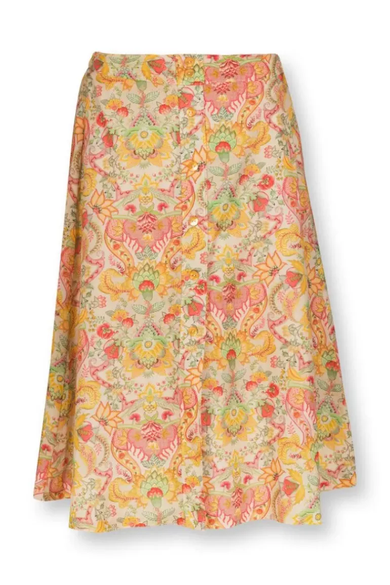 Geef Je Garderobe Een Kleurrijke En Elegante Twist Met Deze Stijlvolle, Gele, Rok Van Pip Studio. Een Rok Is Een Trendy En Gemakkelijk Item Voor Een Speciale Gelegenheid Maar Ook Heerlijk Om Op Een Doordeweekse Dag Te Dragen. Laat Je Betoveren Door Het Prachtige Kyoto Festival Dessin, Welke Over De Gehele Rok Is Toegepast. Dit Herhaalde Bloemdessin Is Opgebouwd Uit Een Variatie Van Fantasierijke Chintzbloemen En Bladeren. Symmetrisch Geplaatste Bloementakken Met Uitgewerkte Decoratieve Bloemen Geven Deze Rok Een Luxe Uitstraling. Mix & Match Deze Rok Met Een Van Onze Tops Uit De Homewear Collectie Voor Een Prachtig Resultaat.