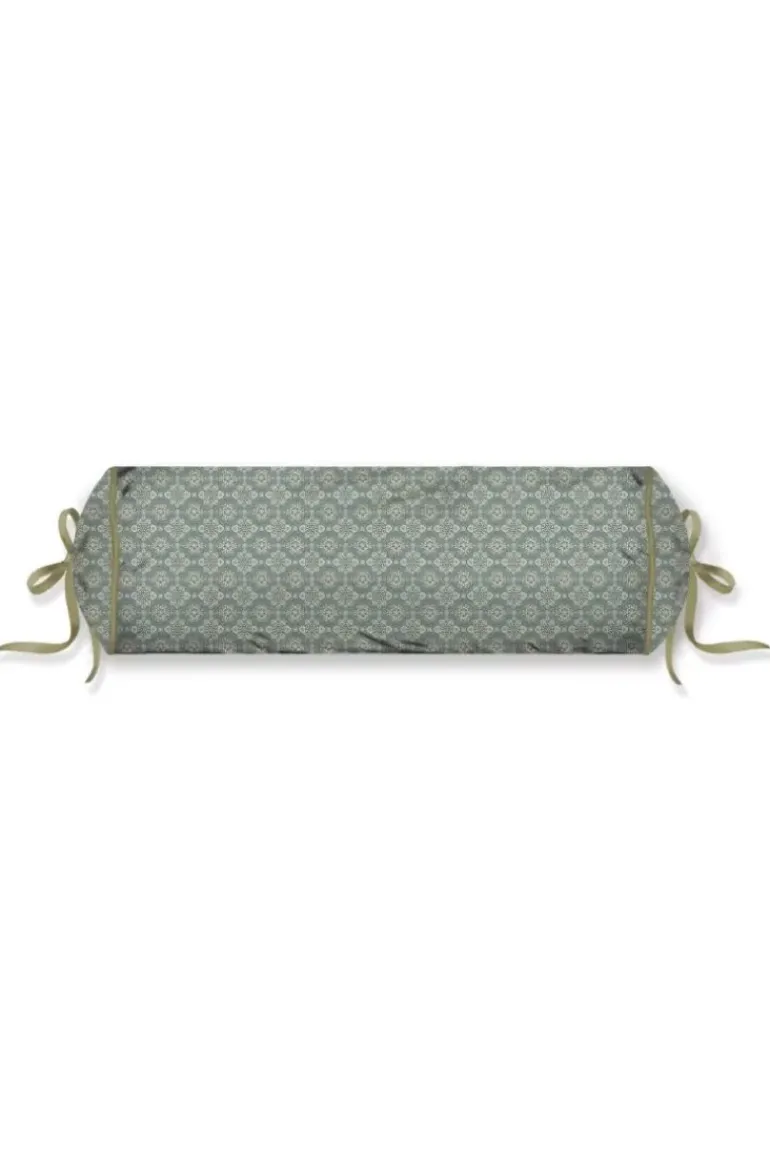 Het Rolkussen Autunno Bestaat Uit Een Kleine Geometrische Print. De Gedetailleerde Striksluiting Maakt Het Kussen Helemaal Pip.