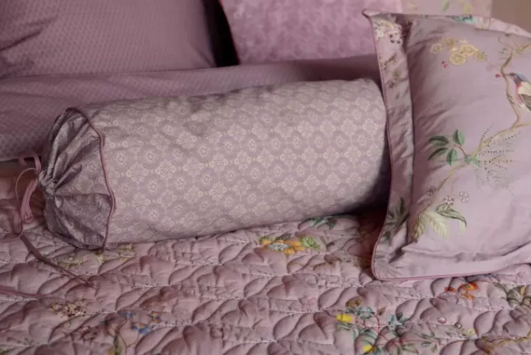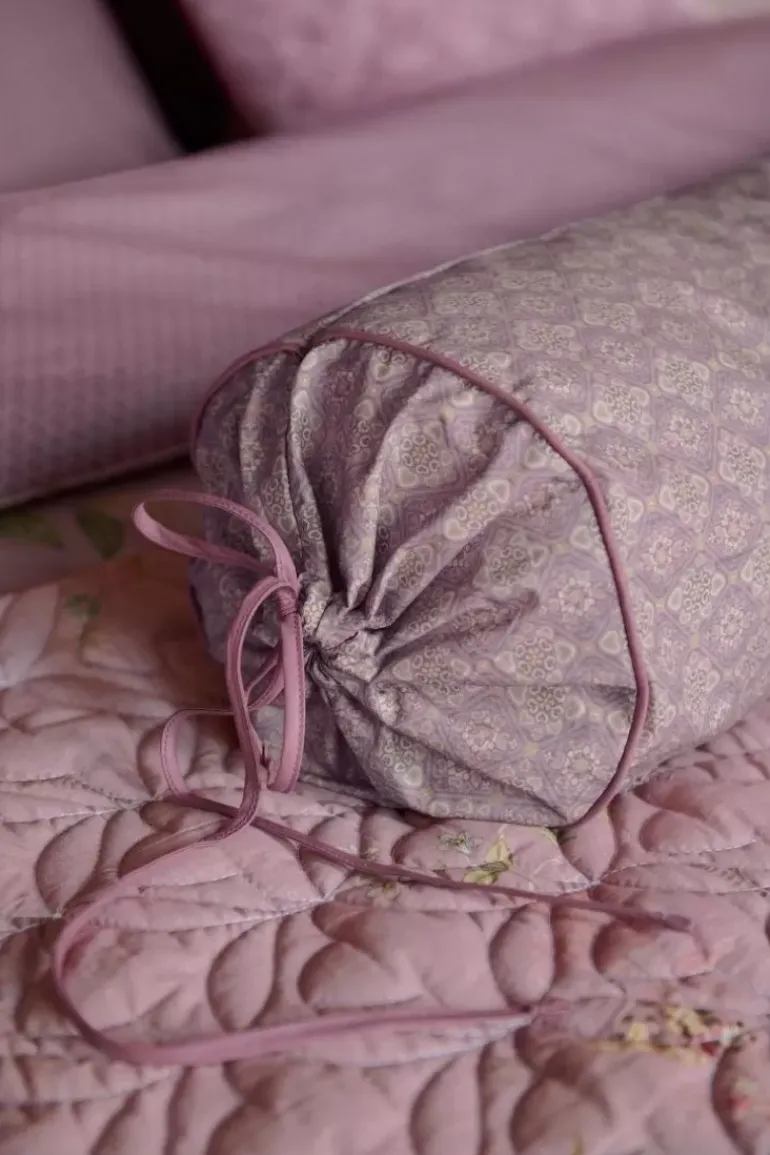 Het Rolkussen Autunno Bestaat Uit Een Kleine Geometrische Print. De Gedetailleerde Striksluiting Maakt Het Kussen Helemaal Pip.