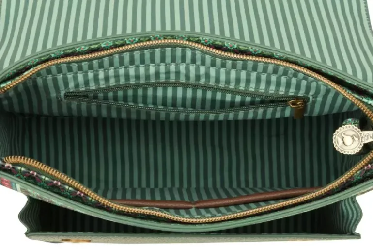 Ga De Deur Uit In Stijl Met Deze Groene Schoudertas Uit De Clover Collectie. De Schoudertas Is Versierd Met Een Herhaald Dessin Van Gestilleerd Klaveretjes En Heeft Naast Een Groot Opbergvak Ook Een Klein Vakje Aan De Voor- En Achterkant Waarin Je Jouw Belangrijke Spullen Kunt Opbergen Zoals Je Telefoon Of Sleutels.