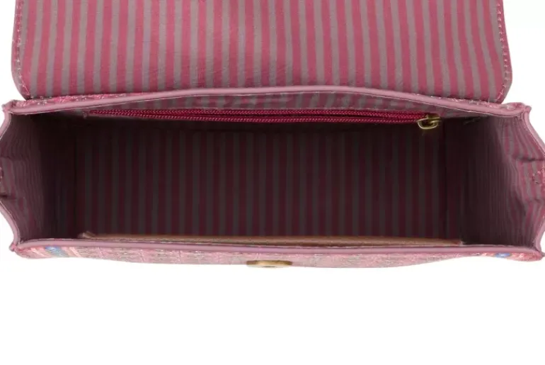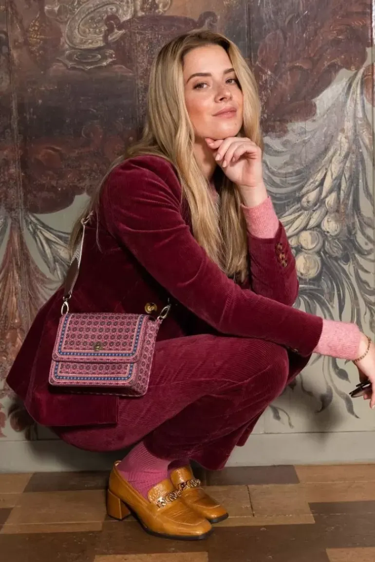 Ga De Deur Uit In Stijl Met Deze Kleine Roze Schoudertas Uit De Clover Collectie. De Schoudertas Is Versierd Met Een Herhaald Dessin Van Gestilleerd Klaveretjes En Heeft Naast Een Groot Opbergvak Ook Een Klein Vakje Aan De Voor- En Achterkant Waarin Je Jouw Belangrijke Spullen Kunt Opbergen Zoals Je Telefoon Of Sleutels.