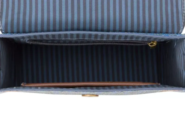 Ga De Deur Uit In Stijl Met Deze Kleine Blauwe Schoudertas Uit De Clover Collectie. De Schoudertas Is Versierd Met Een Herhaald Dessin Van Gestilleerd Klaveretjes En Heeft Naast Een Groot Opbergvak Ook Een Klein Vakje Aan De Voor- En Achterkant Waarin Je Jouw Belangrijke Spullen Kunt Opbergen Zoals Je Telefoon Of Sleutels.