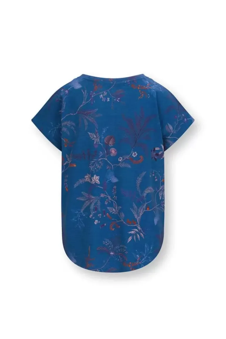Deze Sport Top In De Kleur Blauw Is Uitgevoerd Met Het Speelse Isola Dessin. De Print Is Opgebouwd Uit Een Verfijnde Print Van Meerkleurige Takjes En Varens. De Top Heeft Een Ronde Hals En Een Wijde Pasvorm.
