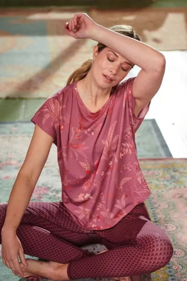 Deze Sport Top In De Kleur Roze Is Uitgevoerd Met Het Speelse Isola Dessin. De Print Is Opgebouwd Uit Een Verfijnde Print Van Meerkleurige Takjes En Varens. De Top Heeft Een Ronde Hals En Een Wijde Pasvorm.