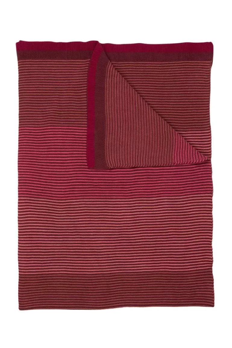 Blockstripe Heeft Een Subtiel Printpatroon In Diverse Rode Kleurtinten. De Grove Breistructuur Geeft De Deken Een Warme Uitstraling En Voelt Heerlijk Zacht Aan.