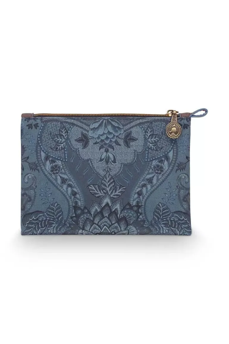 Met Deze Kleine Blauwe Toilettas Uit De Kyoto Festival Collectie Heb Je Jouw Favoriete Verzorgingsproducten Altijd Binnen Handbereik. De Toilettas Is Versierd Met Met Een Unieke Variatie Van Fantasierijke Chintzbloemen En Bladeren Aan De Ene Kant En Heeft Aan De Andere Kant Een Dessin Van Gestileerde Boogjes Die Behoort Tot De Suki Collectie. De Toilettas Heeft Een Vak En Is Aan De Binnenkant Afgewerkt Met Een Dessin Van Gestileerde Boogjes.