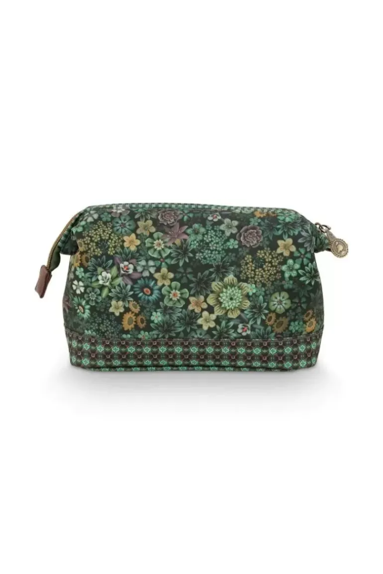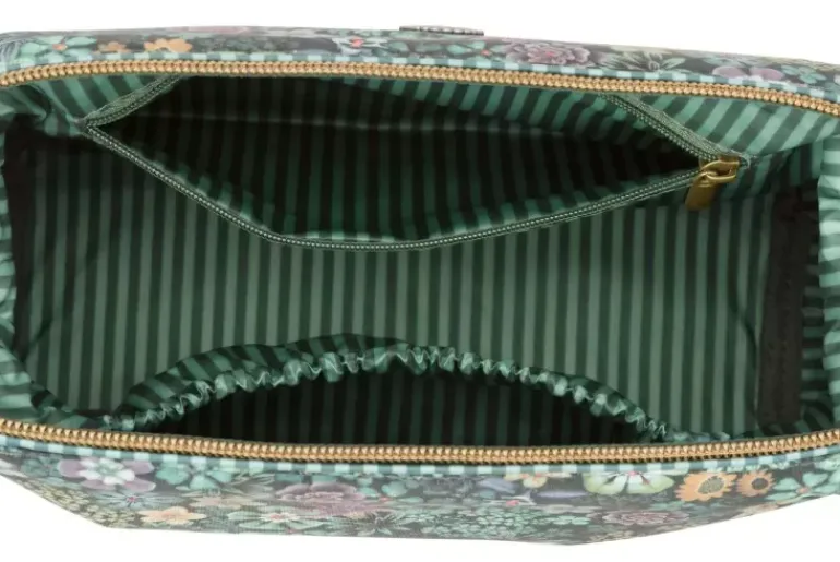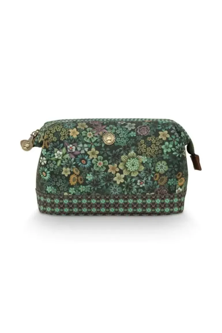 Met Deze Groene Toilettas Uit De Tutti I Fiori Collectie Heb Je Jouw Favoriete Verzorgingsproducten Altijd Binnen Handbereik. De Toilettas Is Versierd Met Met Een Unieke Variatie Van Fantasierijke Bloemen Heeft Aan De Onderkant Een Klavertjes Dessin. De Toilettas Heeft Een Groot Vak En Meerdere Kleine Vakjes En Is Aan De Binnenkant Afgewerkt Met Een Gestilleerd Dessin.
