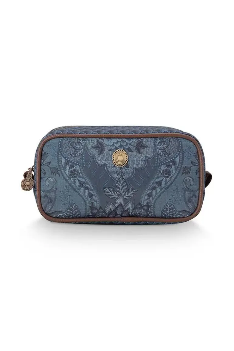 Met Deze Kleine Blauwe Toilettas Uit De Kyoto Festival Collectie Heb Je Jouw Favoriete Verzorgingsproducten Altijd Binnen Handbereik. De Toilettas Is Versierd Met Met Een Unieke Variatie Van Fantasierijke Chintzbloemen En Bladeren En Heeft Aan De Bovenkant Een Dessin Van Gestileerde Boogjes. De Toilettas Heeft Een Groot Vak En Een Kleine Vakje En Is Aan De Binnenkant Afgewerkt Met Een Dessin Van Gestileerde Boogjes.