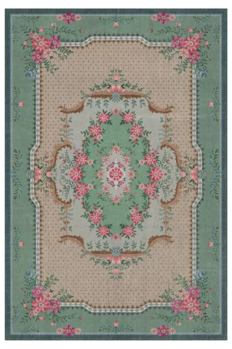 Het Groene Pip Chique Vloerkleed Heeft Een Royale Uitstraling. Het Vintage Vloerkleed Geeft Een Moderne Draai Aan Een Traditioneel Design. Het Dessin Is Opgebouwd Uit Kleine Bloemen En Verfijnde Decoratieve Randen, Op Een Ondergrond Van Zachte Kleuren. In De Grote Vlakken Zijn Subtiel Geometrische Patronen Verwerkt, Wat Het Kleed Een Extra Twist Geeft.De Rand Is Versierd Met Een Mooie Donkere Kleur. Dankzij De Zachte En Vrolijke Kleuren Is Het Pip Chique Vloerkleed Een Blikvanger In Je Interieur. Het Tapijt Is Geprint En Gemakkelijk Te Combineren Met Veel Woonstijlen. Naast De Kleur Groen Is Het Pip Chique Vloerkleed Ook Verkrijgbaar In Het Khaki En Mauve. Welke Kamer Verrijk Jij Met Het Pip Chique Vloerkleed?