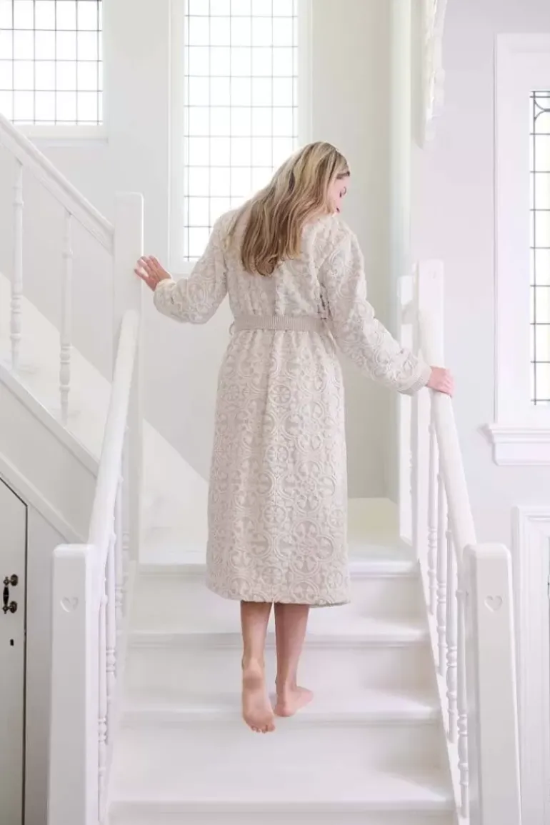 Deze Khaki Tile De Pip Badjas Is Fijn Om Te Dragen In De Ochtend, Maar Ook Heerlijk Om De Dag Mee Af Te Sluiten. Gedecoreerd Met Een Tonaal Ingeweven Tegelmotief Met Hoog-Laag Effect. De Badjas Heeft Een Mooi Aansluitende Doorgestikte Kraag, Steekzakken En Sluit Je Met Een Lang Ceintuur. De Badjas Is Gemaakt Van 100% Hoogwaardige Katoen Terry Velours Met Een Kwaliteit Van 380 Gr/M2.