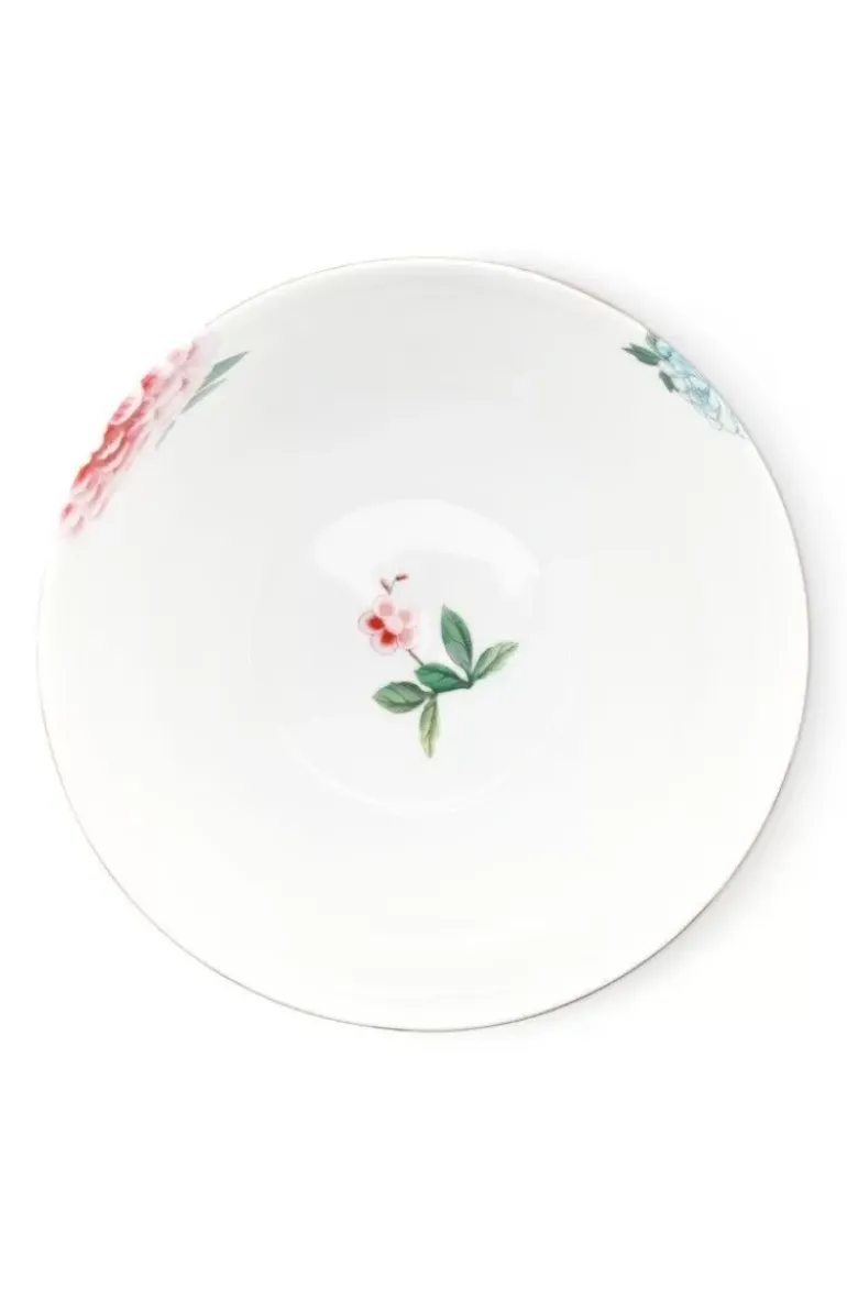 Deze Grote Kom Is Rondom Versierd Met Exotische Bloemen En Vogels, Gouden Details En Een Vlinder. De Achtergrond Heeft Een Verfijnde Print En Binnenin De Kom Komen Elementen Uit Het Dessin Terug. Vormt Een Mooie Combinatie Met De Rest Van Het Servies Uit De Blushing Birds Collectie.