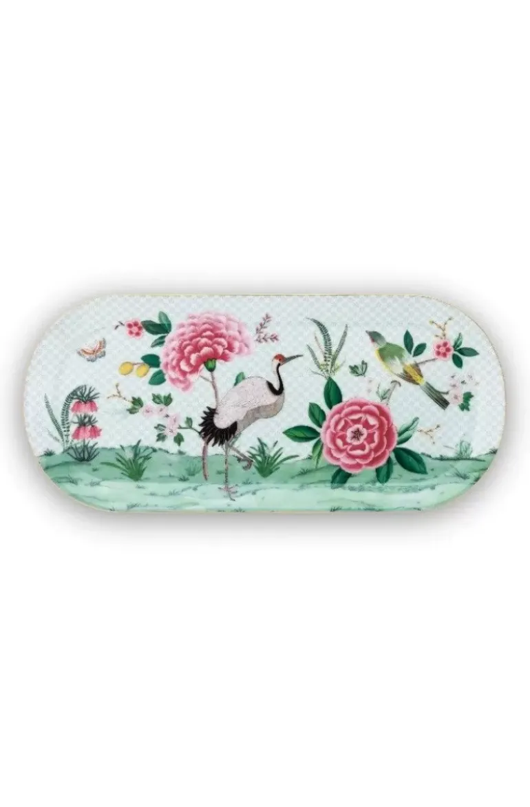 Dit Rechthoekige Taartplateau Is Versierd Met Exotische Bloemen, Tropische Vogels, Een Vlinder En Gouden Details. De Ondergrond Heeft Een Verfijnd Dessin. Vormt Een Mooie Combinatie Met De Gebaksbordjes En Het Koffie- En Theeservies Uit De Blushing Birds Collectie.