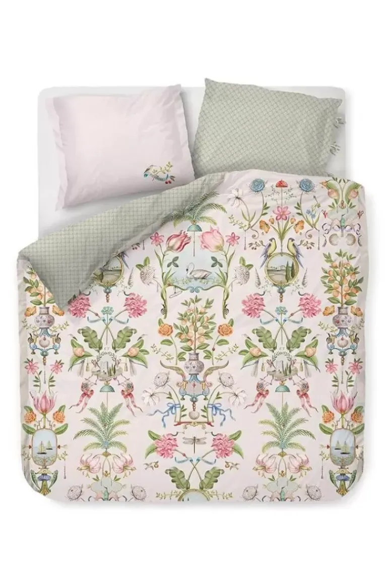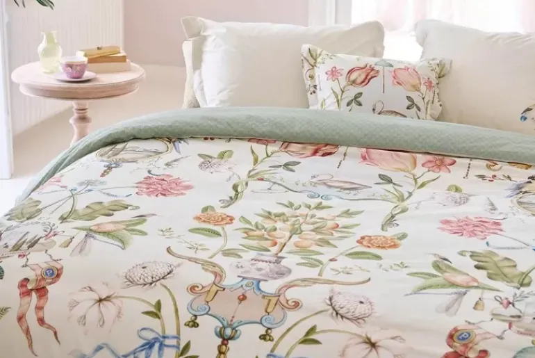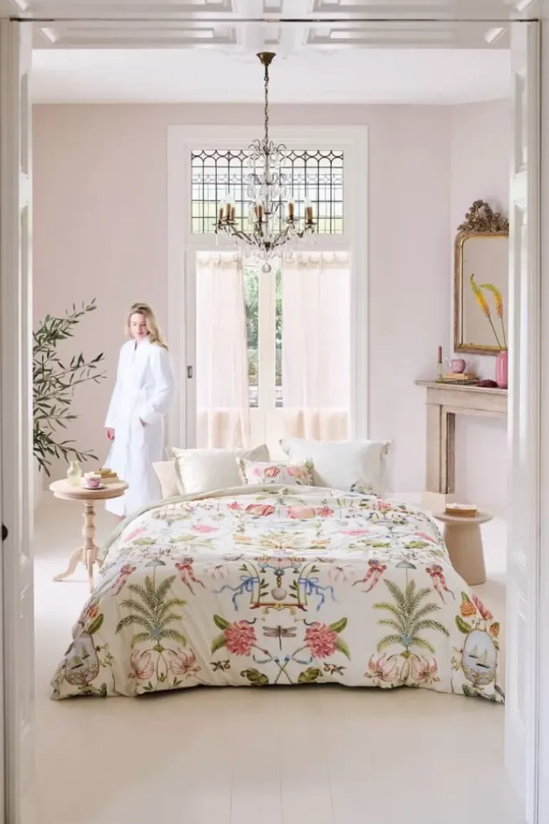 Het Witte Dessin Festa Di Lividonia Doet Je Denken Aan Een Mooie Muurschildering In Een Statig Italiaans Landhuis. Het Dessin Is Opgebouwd Uit Verschillende Bloemen, Vogels En Ornamenten Die Verwijzen Naar Voorstellingen Uit Italie. De Achterkant Heeft Een Patroon Met Schelpjes. Het Overtrek En De Kussens Hebben Een Doorgestikte Oxford Rand Aan De Zijkanten, Wat Een Luxe Uitstraling Geeft. Het Bedovertrek Kan Je Tweezijdig Gebruiken En Hiermee Een Speels Mix & Match Effect Op Je Bed Creeeren.