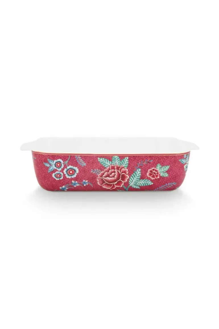 Bak Je Gerechten In Deze Vrolijke Ovenschaal Uit De Flower Festival Collectie. De Ovenschaal Heeft Een Bloemendessin Met Fantasierijke Rode En Roze Chintzbloemen Met Lichtblauwe En Groene Bladeren.