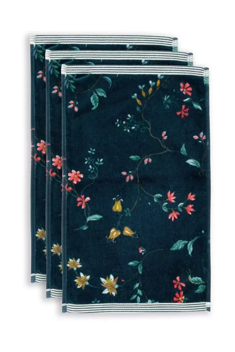 Vernieuw Je Badstof Met Deze Set Van Drie Donkerblauwe Les Fleurs Gastendoeken. De Vrolijke Les Fleurs Badstof Collectie Is Een Echte Aanwinst In Elke Badkamer. De Les Fleurs Gastendoeken Hebben Een Dessin Van Sierlijke Bloementakjes Met Kleine Gedecoreerde Fantasiebloemen. De Les Fleurs Gastendoeken Passen Goed Bij De Andere Items Uit Deze Collectie, Waardoor Er Een Leuk Mix & Match Effect Ontstaat In Je Badkamer.