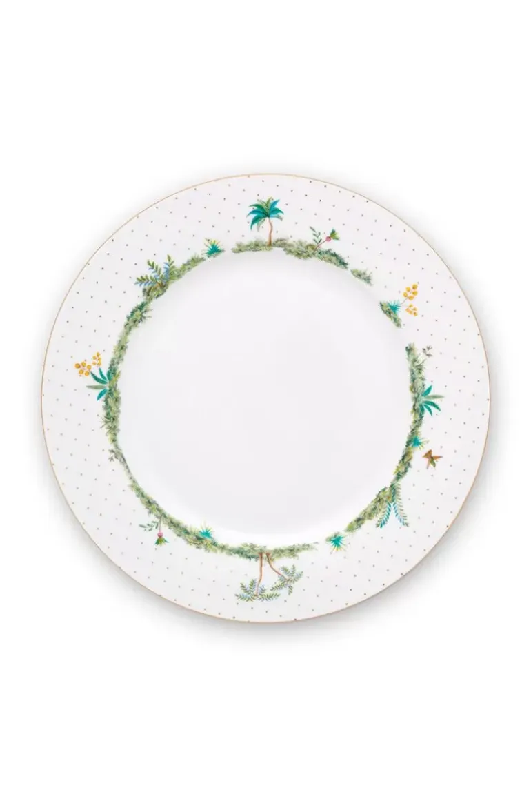 Dineren Met Het Gezin Of Met Vrienden? Dit Diepe Bord Is Perfect Te Gebruiken Voor Het Voorgerecht. Het Diepe Bord Heeft Een Witte Achtergrond Met Gouden Stippen En Is Rond Het Midden Versierd Met Exotische Planten. Perfect Te Combineren Met De Andere Borden Uit De Jolie-Collectie.