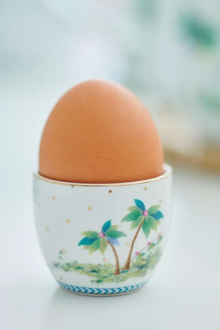 Een Eierdopje Nodig Voor Een Perfect Ontbijt Op Zaterdagochtend? Dit Is Jouw Go-To. Met De Tropische Palmbomen Zal Je Serviesgoed Meteen Opvallen. Dit Eierdopje Heeft Gouden Stippen En Gouden Details Aan De Rand. Combineer Dit Eierdopje Met Een Ontbijtbordje En Mok Uit De Jolie Collectie Voor Een Mooi Resultaat. Nu Is Het Tijd Om Je Familie Of Vrienden Uit Te Nodigen Voor Een Uitgebreid Ontbijt.