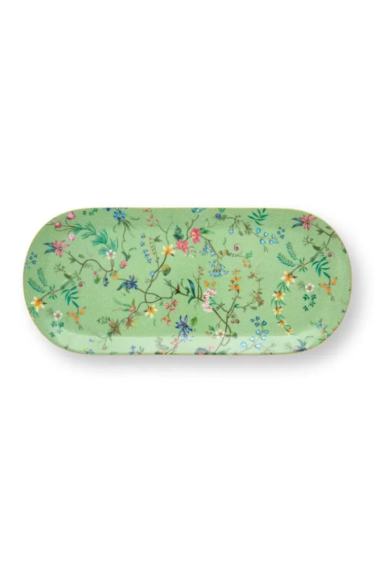 Dit Groene Rechthoekige Taartplateau Is Versierd Met Verschillende Kleurrijke Bloemen. Het Brengt Je Naar Een Happy Place En Is Perfect Te Gebruiken Bij Een High Tea Met Vrienden. Het Taartplateau Is Ideaal Om Kleine Hapjes Op Te Serveren, Of Te Gebruiken Als Schaal Voor In Je Melkkan En Suikerpot. Bekijk De Rest Van De Jolie-Collectie Voor Inspiratie Om Te Combineren.