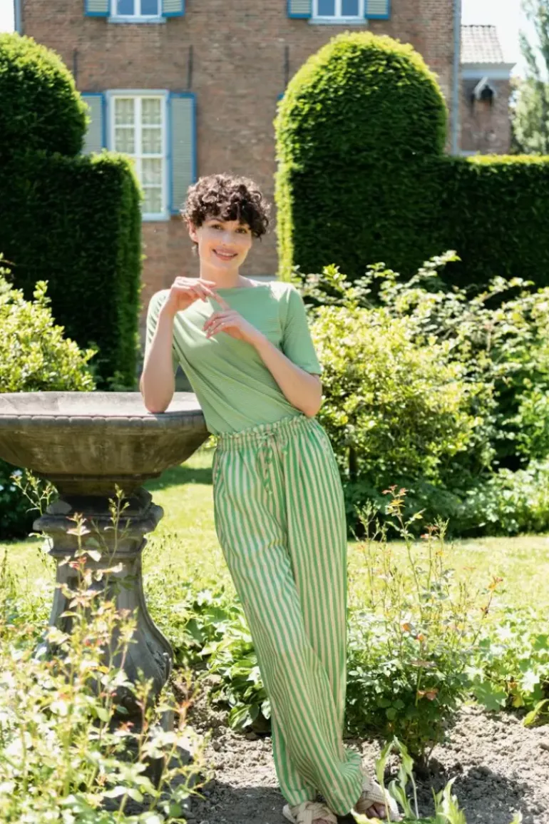 Comfortabel En Zacht, Deze Lange, Groene, Bernice Broek Uit Onze Nieuwe Homewear Collectie. Gedecoreerd Met Het Vrolijke Sumo Stripe Dessin Waarin Verticale Strepen De Hoofdrol Spelen. De Taille Is Elastisch En Heeft Een Koord Rondom Voor Ultiem Comfort. Mix & Match Deze Broek Met De Vrolijke Prints En Comfortabele Items Uit Onze Nieuwste Homewear Collectie En Creeer Een Prachtige Outfit.