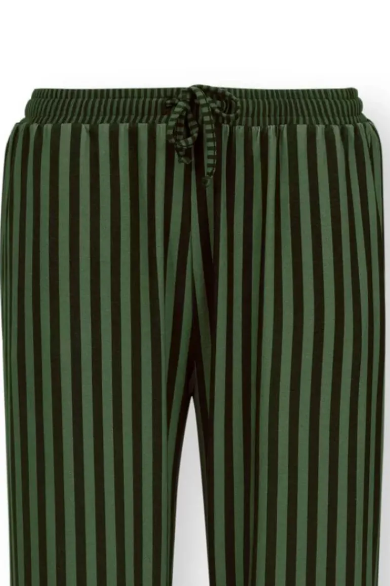 Deze Lange Broek In Het Donkergroen Is Uitgevoerd Met Het Gestreepte Sumo Stripe Dessin. Het Herhaalde Dessin Is Opgebouwd Uit Symmetrische Strepen. De Taille Is Elastisch En Heeft Een Koord Rondom Voor Een Comfortabele Fit.