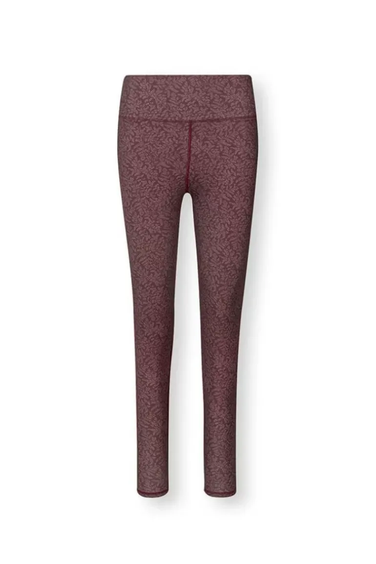 Deze Lange Sportlegging In Het Terra Rood Is Uitgevoerd Met Het Elegante Leafy Dots Dessin. Het Herhaalde Dessin Is Opgebouwd Uit Een Variatie Van Bladeren. De Legging Is Gemaakt Van Een Elastische Stof Voor Een Comfortabele En Flaterende Fit.