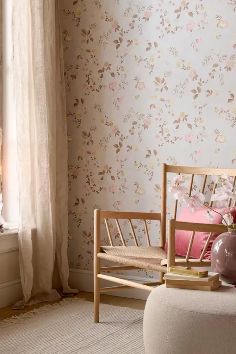 Geef Je Huis Een Betoverende Make-Over Met Het Prachtige Tokyo Blossom Behang In De Kleur Zand. Dit Romantische Design Heeft Een Verfijnde Print Van Kleine Pastelkleurige Bloemen En Bladeren Die Echt Geborduurd Lijken. De Kleuren Zijn Zacht Met Subtiele Kleuraccenten. De Ondergrond Heeft Een Geprint, Glanzende Textuur, Waardoor Dit Behang Net Als Echt Zijde Lijkt. Het Tokyo Blossom Behang Is Verkrijgbaar In Meerdere Kleuren: Jade Groen, Mosterd Geel, Khaki En Roze Mauve.
