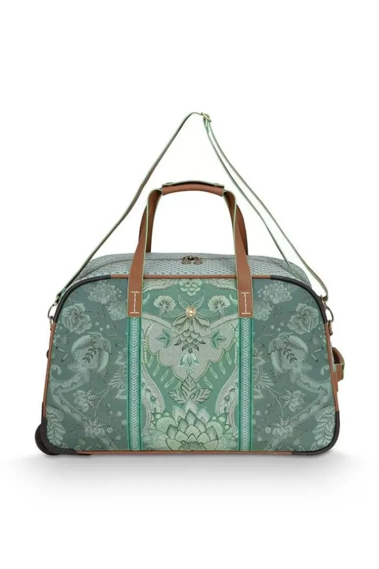 De Nieuwe Weekender Op Wielen In De Kleur Groen Met Het Kyoto Fesitval Dessin Is Een Geweldige Aanvulling Voor Je Warderobe. Deze Weekender Heeft Een Groot Opbergvak Voor Je Kleding En Schoenen, Waarin 3 Zijvakjes Te Vinden Zijn. Een Met Rits En Twee Met Elastische Band. De Tas Is Waterafstotend Van Binnen En Buiten, Dus Perfect Voor Elke Weersvoorspelling. Hiernaast Kan Je Van De Weekender, Een Weekender Op Wielen Van Maken Door De Hendel Uit Het Opbergvak Te Halen.