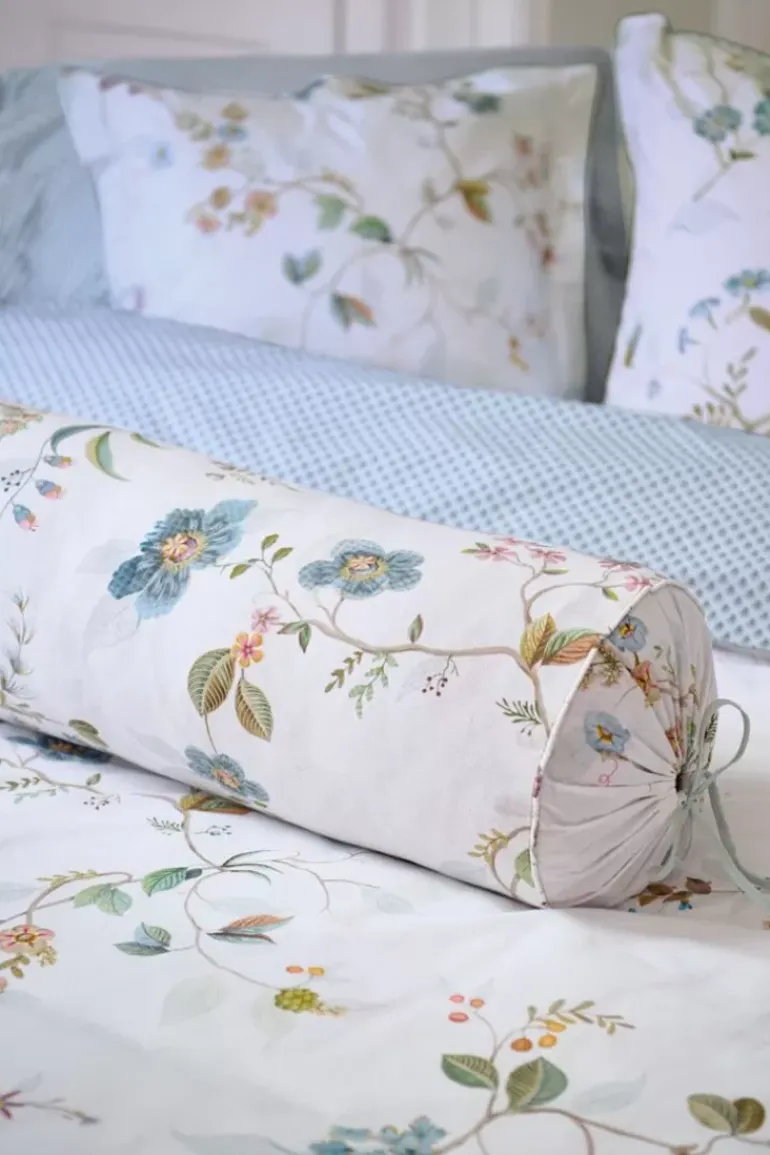 Het Bloemendessin Van Het Witte Rolkussen Kawai Flower Bestaat Uit Sierlijke Takjes Waaraan Fantasierijke Boterbloemen, Klaprozen, Anemonen En Dotterbloemen Groeien. De Bloemen En Blaadjes Hebben Verrassende Kleurcombinaties, Wat Een Moderne Twist Geeft Aan Dit Klassieke Dessin. De Gedetailleerde Striksluiting Maakt Het Kussen Helemaal Pip.