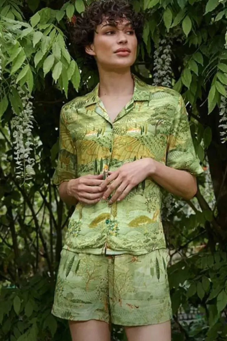 Kom Heerlijk Tot Rust In Deze Top Met Toscana Dessin. Het Is Een Top Met Korte Mouwen En Inkepingskraag, Gemaakt Van Een Geweven Glanzende Viscose Stof Met Een Oversizede Pasvorm. Combineer Deze Top Mooi Met Een Broek Of Short In Dezelfde Print Om Hem Als Complete Set Te Dragen. Of Mix En Match De Top Met Andere Items Uit De Nieuwe Homewear Collectie.
